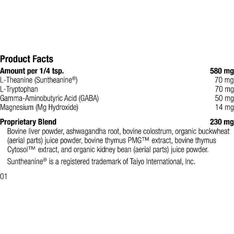 - Contains a blend of amino acids that interact with calming neurotransmitter pathways