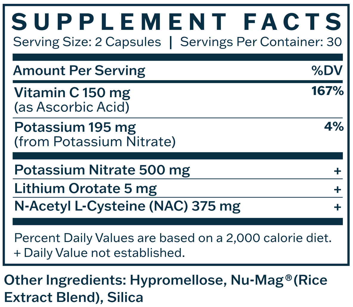 Mood’s innovative formula combines three key ingredients—potassium nitrate, lithium orotate, and N-Acetyl Cysteine (NAC)—to enhance nitric oxide production, nourish the brain, and elevate emotional balance. Carefully crafted to optimize cognitive function, Mood helps sharpen focus, improve mental clarity, and promote a positive outlook.